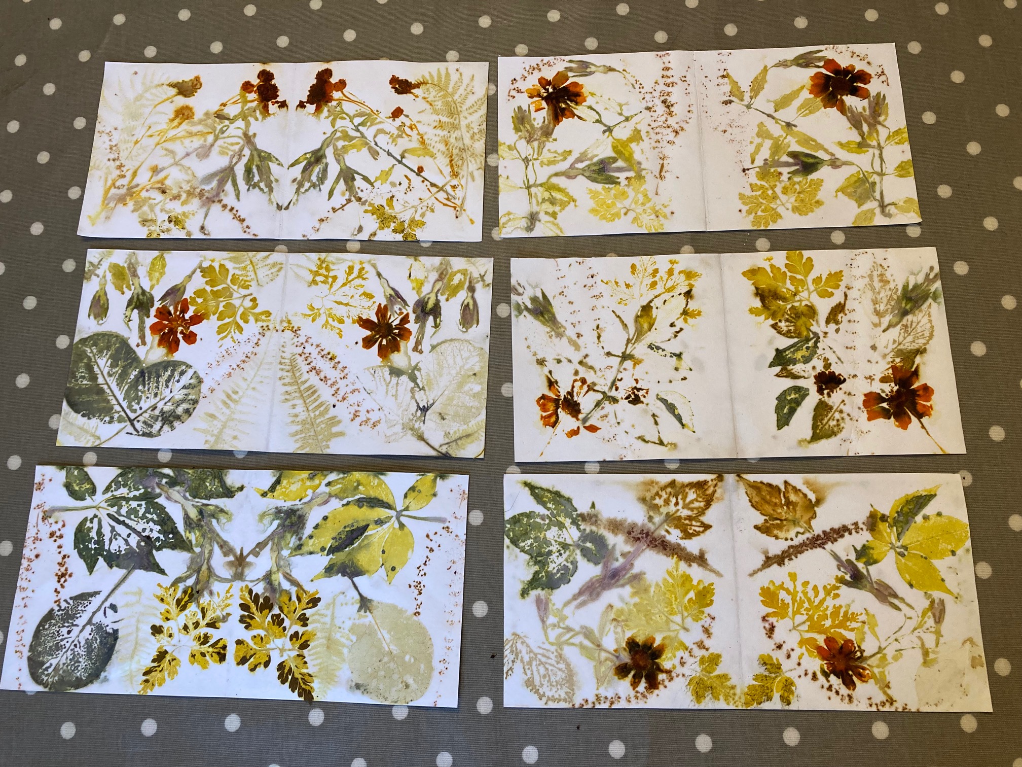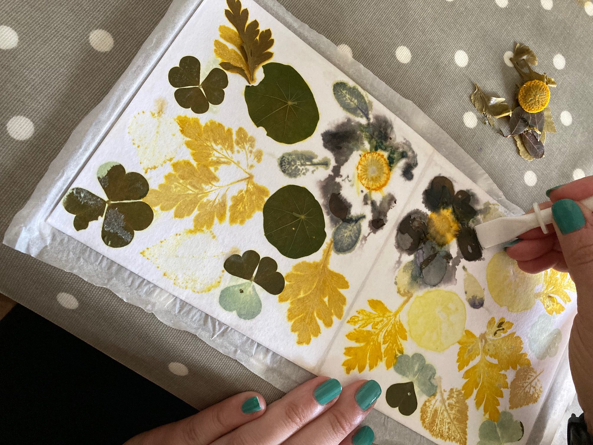 In this 3 hour workshop we will be using seasonal plants gathered in Pembrokeshire to create designs by Botanical printing, and Tataki zome or flower pounding. Leaves placed on paper will be heated to release the dyes inside them to make images. These can be used for special greetings cards. You will also experiment by hammering flowers and leaves onto fabric transferring their shapes and colours. Materials will be prepared by mordanting where necessary, and there will be explanations as we go along.